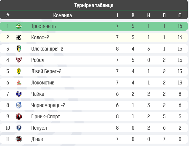 Перемога Локомотива перевертає ситуацію в групі лідерів. Враховуючи пропуск туру Ребелом і втрату очок Колосом-2, ближче до лідерів підтягується столичний клуб. Таким чином, підопічні Карпенка здобувають свою третю поспіль перемогу та обривають 8-матчеву безпрограшну серію Олександрії-2.