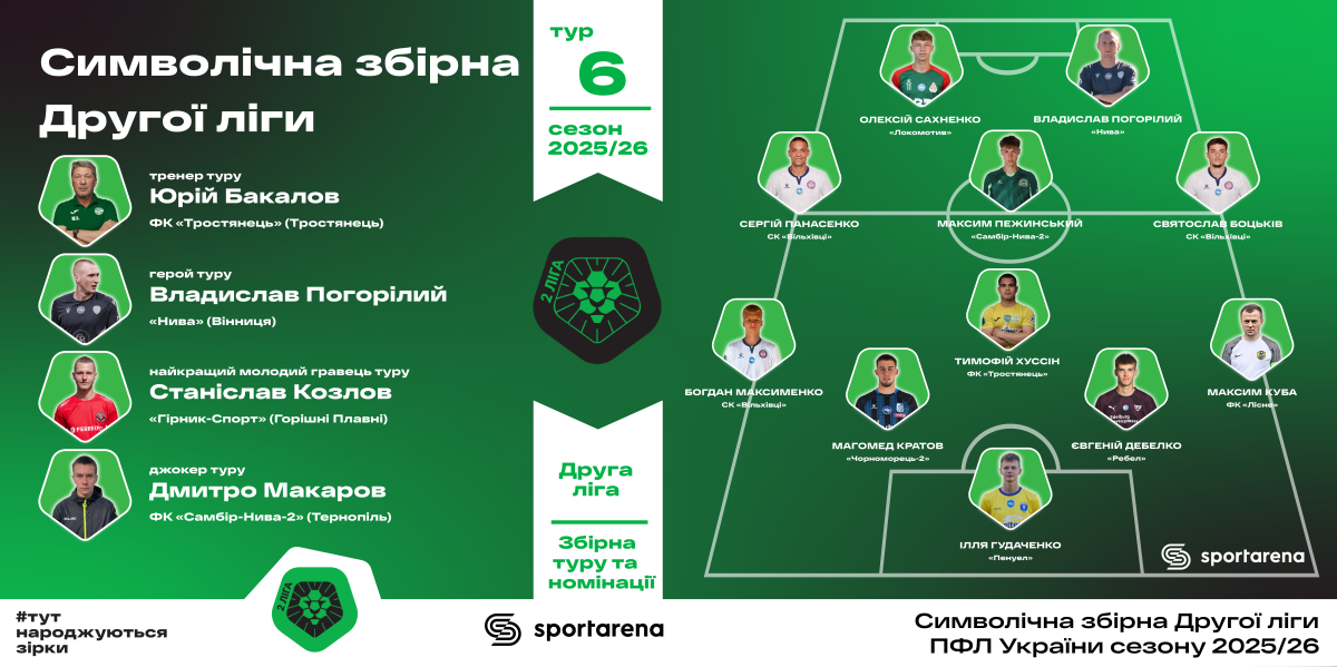 Прочитати всю символічну збірну 6-го туру можна за цим посиланням (https://sportarena.com/uk/footboll/ukraina-vtoraya-liga-futboll/gol-cherez-sebe-het-trik-novachka-z-upl/).